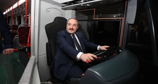 ANKARA (AA) Sanayi ve Teknoloji Bakanı Mustafa Varank, yeni nesil toplu ulaşım araçlarıyla Türkiyede ve dünyada adını duyuran Bozankaya AŞ tarafından üretilen elektrikli otobüsle test sürüşü yaptı.