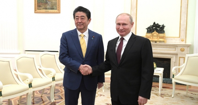 Rusya Devlet Başkanı Vladimir Putin ile geçen hafta Moskova'da yaptıkları görüşmelerde iki ülke arasında bir barış anlaşması imzalanması gerektiği konusunda mutabık kaldıklarını ifade eden Başbakan Abe, "Savaşın bitiminden bu yana 70 yıldan fazla zamandan bu yana çözümsüzlüğe terk edilen bu meselenin halledilmesi için Başkan Putin ile güçlü bir kararlılığı paylaşıyoruz." dedi.