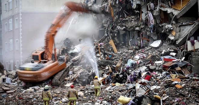 Orhantepe Mahallesi Bankalar Caddesi Sema Sokağı'nda 6 Şubat Çarşamba günü çöken Yeşilyurt Apartmanı'nın etrafındaki binalardan biri olan Yunus Apartmanı'nda dün akşam ara verilen yıkım çalışmalarına yeniden başlandı.