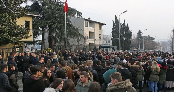Türkiye'nin Üsküp Büyükelçiliği önündeki protestoya, Türkiye'nin Üsküp Büyükelçisi Tülin Erkal Kara'nın yanı sıra Makedonya'nın Dış Yatırımlardan Sorumlu Türk kökenli Devlet Bakanı Elvin Hasan, Türk Hareket Partisi (THP) Genel Başkanı Enes İbrahim, Türk Demokratik Partisi (TDP) Genel Başkanı Beycan İlyas, Türk Milli Birlik Hareketi (TMBH) Genel Başkanı Erdoğan Saraç, Romanların Tamamen Özgürleştirilmesi Partisi Genel Başkanı Nejdet Mustafa, Boşnak Demokratik Birliği Genel Başkanı Munir Kolaşinats, ülkedeki Türk ve yerel kurum ve kuruluşların temsilci ve personeliyle çok sayıda vatandaş katıldı.
