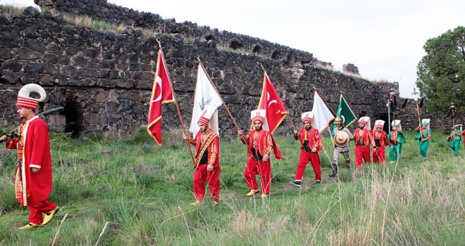 OSMANİYE (AA) İlçe merkezinde kısa bir konser veren öğrenciler, daha sonra geleneksel kıyafetleriyle Toprakkaleye geldi. Mehter marşları çalarak kalenin zirvesine yürüyen gençler, yıpranan Türk bayrağını indirerek yerine yenisini göndere çekti.